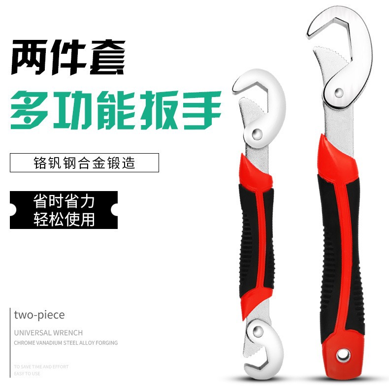 Two universal wrenches that adapt to all kinds of bolts and nuts.